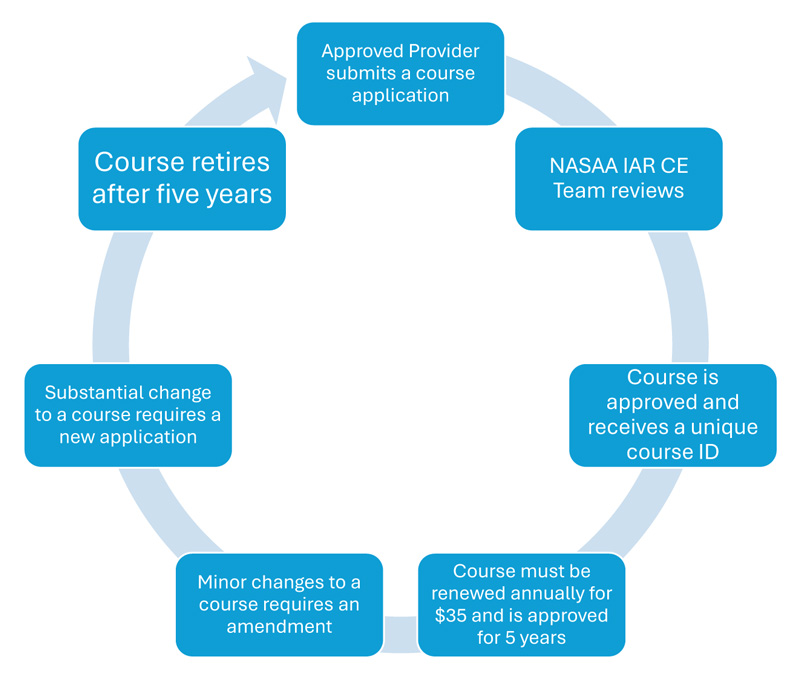 IAR CE provider and course approvals are handled through the Application Management System. For reference, here are copies of the application questions for new IAR CE providers and new IAR CE courses.